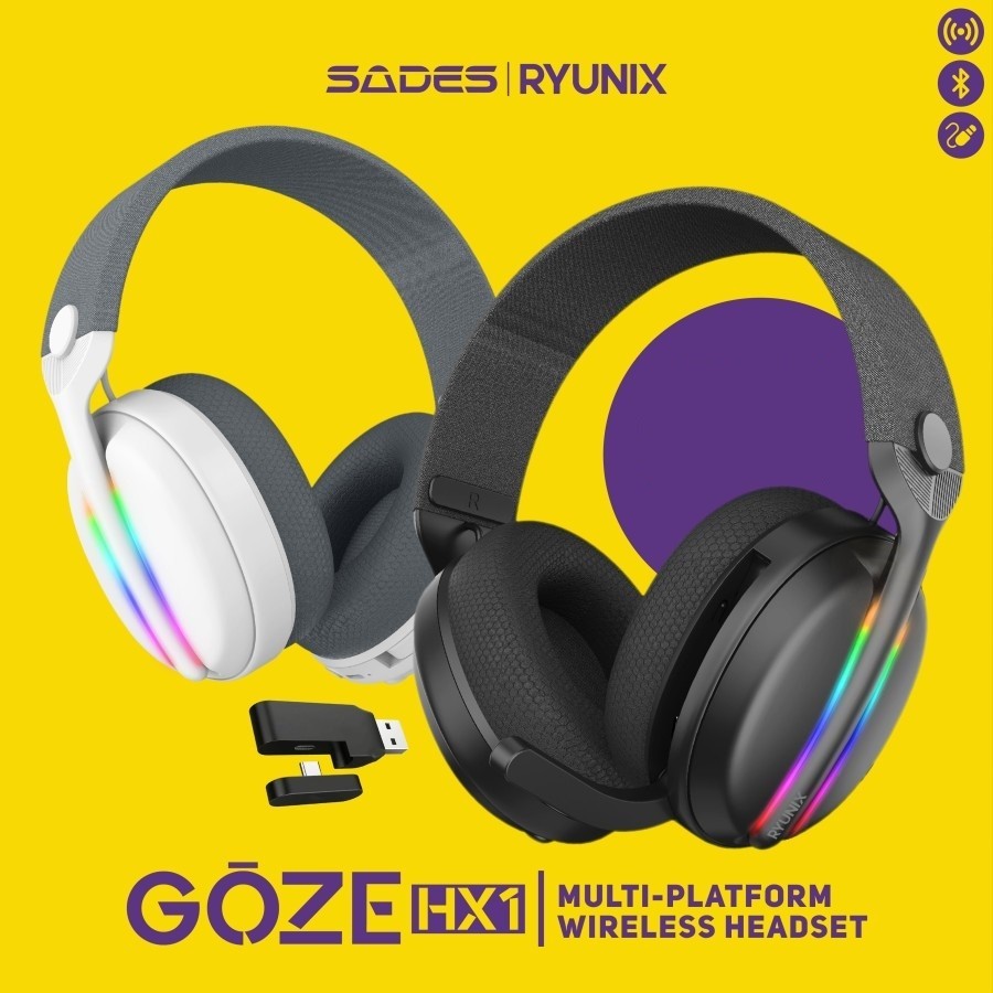 Sades Ryunix Goze HX1 HX-1 Wireless Gaming Headset Bluetooth Tri-Mode Connection HX 1 Low Latency