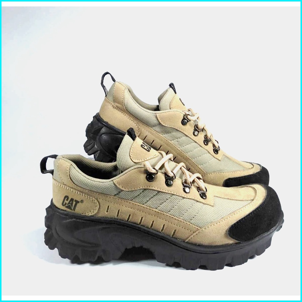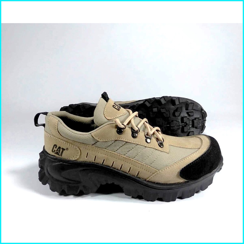 Sepatu Boots Pria Safety Cat Abu Hitam Ujung Besi