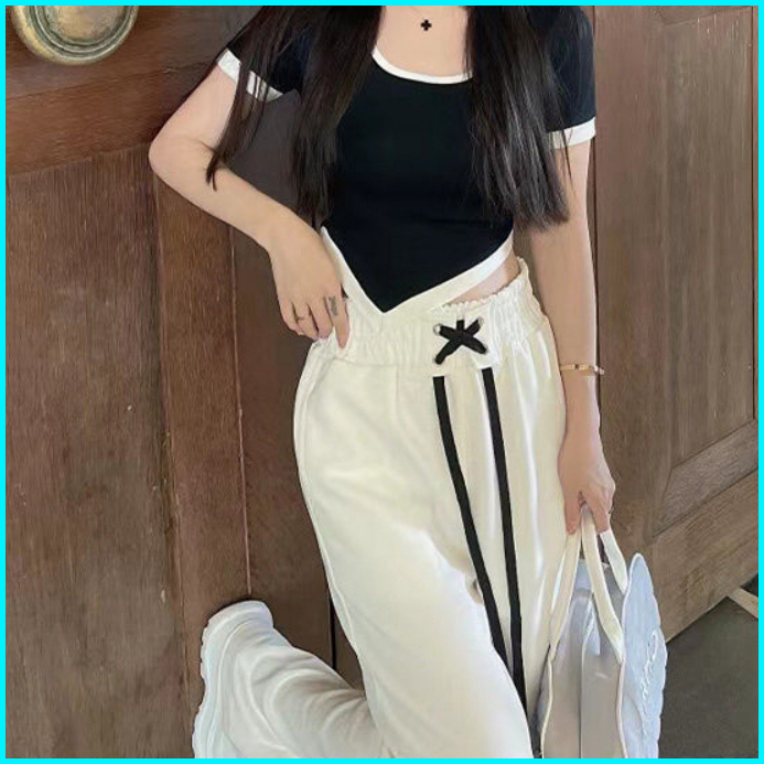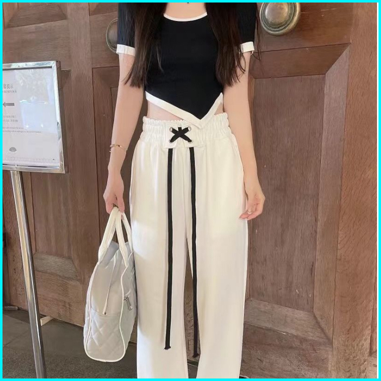 Slim Fit One Set Round Neck Crop Top Drawstring Straight Pants 1694 S M L Xl