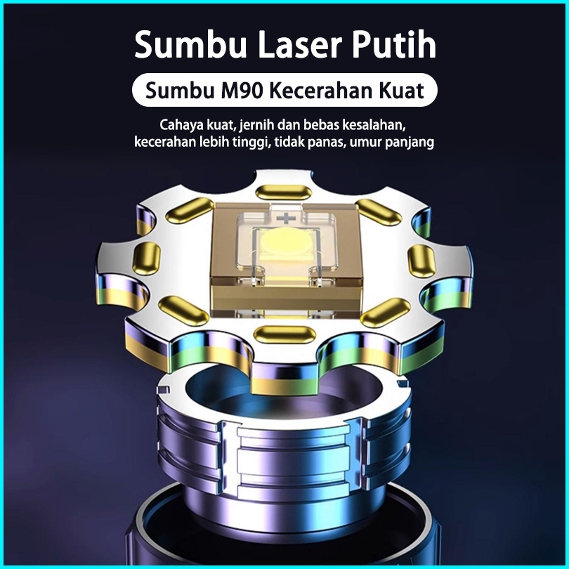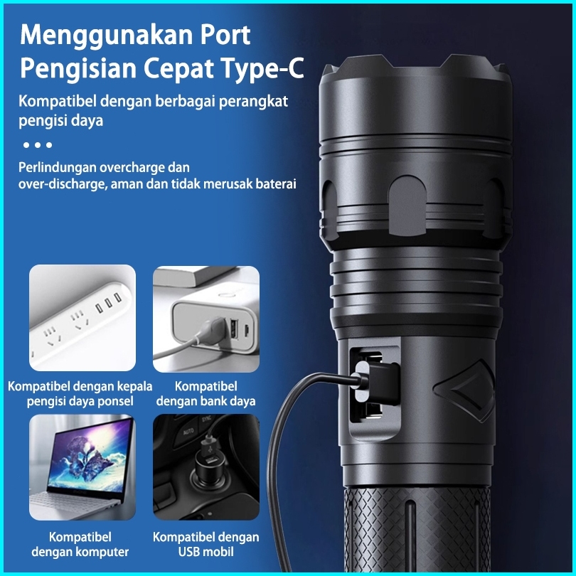 Akona Senter Led Super Terang Jarak Jauh 90000 Lumens Usb-c Lampu Senter Cas Multifungsi Senter Zoom Gratis Baterai 2665