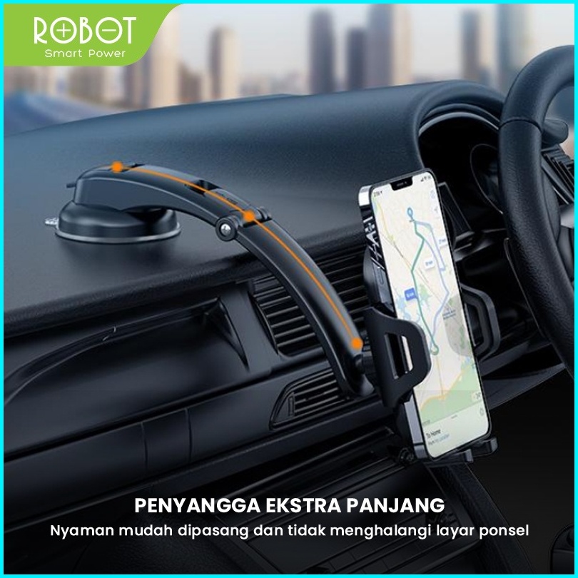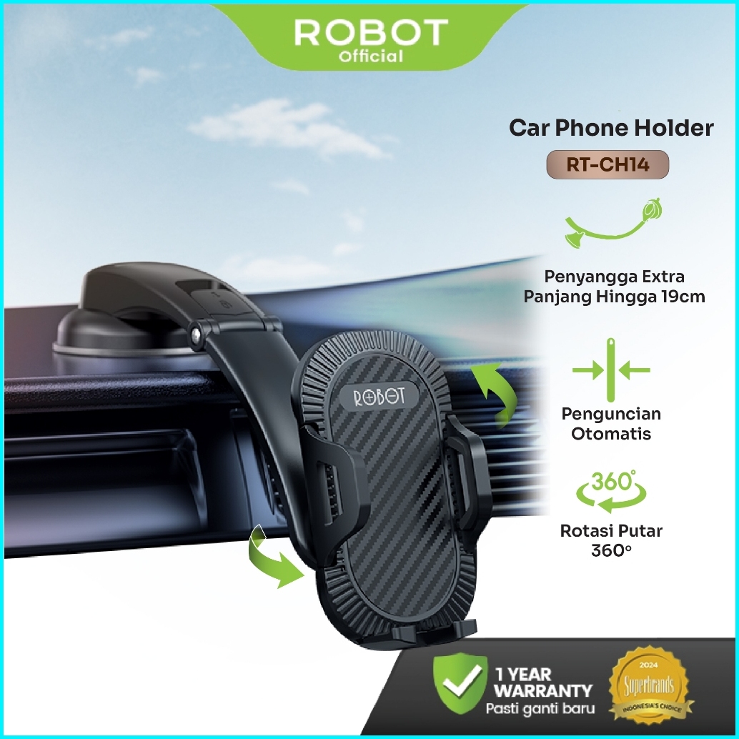 Robot Rt-ch14 Dashboard Suction Cup Automatic Lock Universal Car Holder Black Original - Garansi 1 Tahun