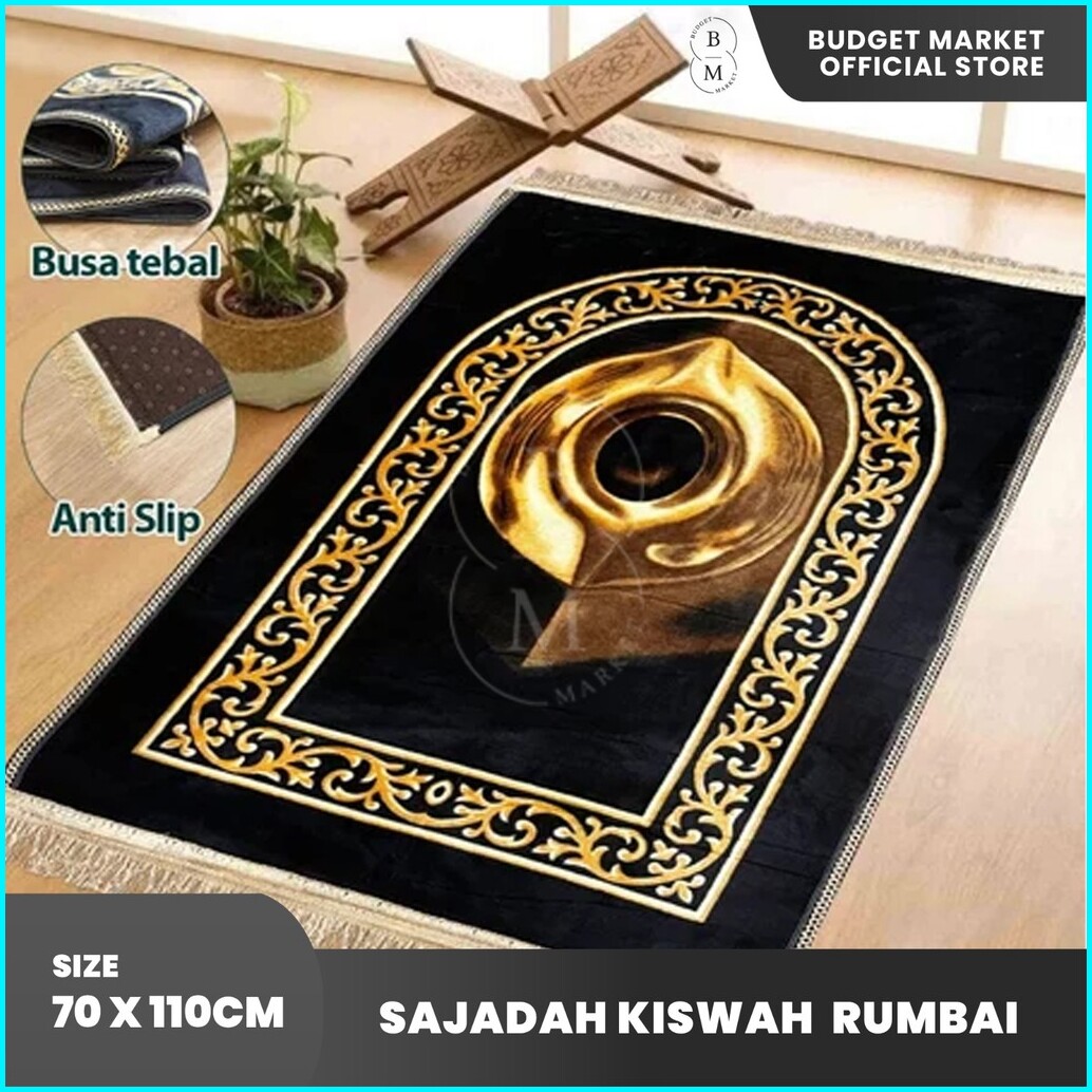 Sajadah Turki Hitam Kiswah 70x110cm Sajadah Rumbai Bludru Tebal Premium