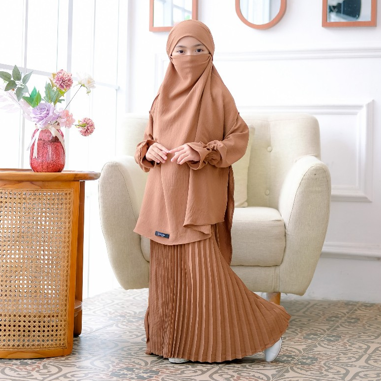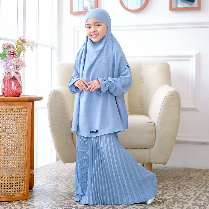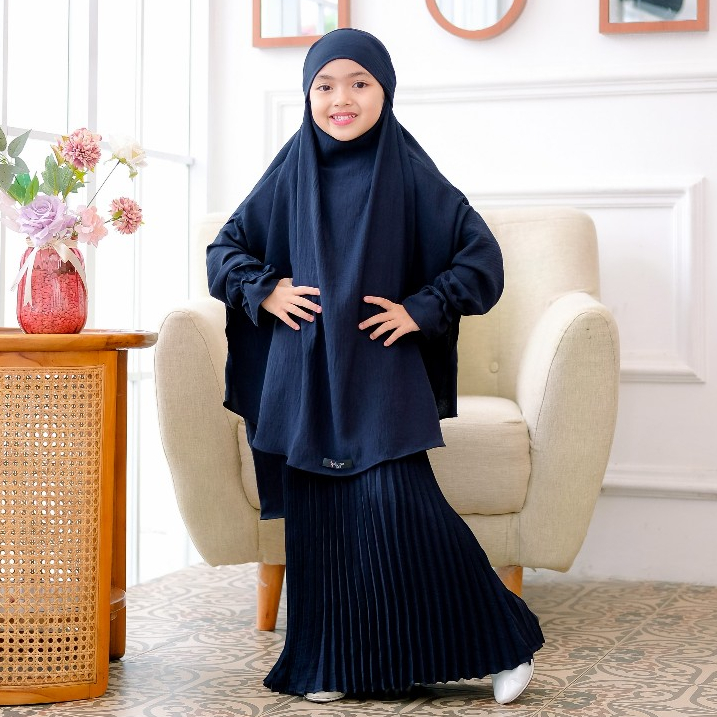 Salvina Kids - Gamis Anak Plisket French Khimar Free Cadar Malika Set