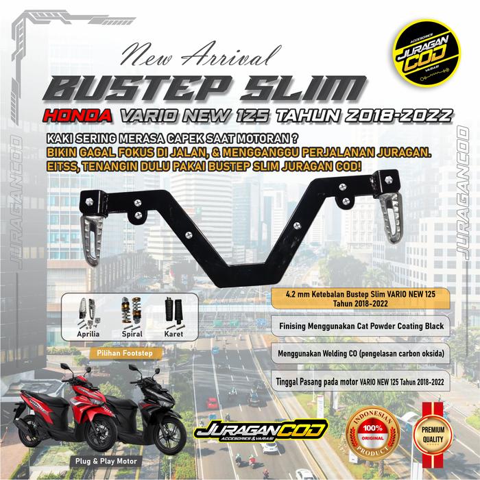 PIJAKAN KAKI DEPAN HONDA VARIO LED 150 125 NEW 2018-2026 MODEL PIPIH SLIM SOLID TEBAL - STEP SILVER C