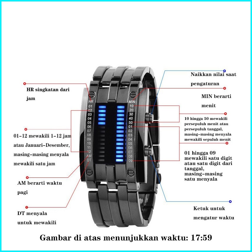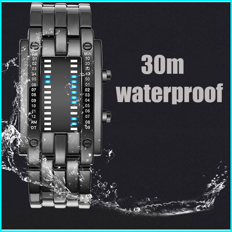 Fngeen Jam Tangan Pria Biner Led Ironman Fashion Keren Digital Bercahaya Stainless Steel Original Anti Air Watch