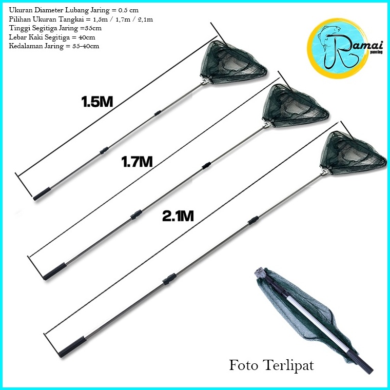 Serokan Ikan Lipat Jaring Bulat Dan Segitiga Telescopic Net Aluminium 1 5m 1 7m 2 1m