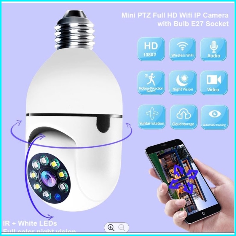 Cctv Lampu Ptz Bohlam E27 8mp Kamera Cctv 1080p Hd V380 Pro Ip Camera Wifi Night Vision Motion Tracking