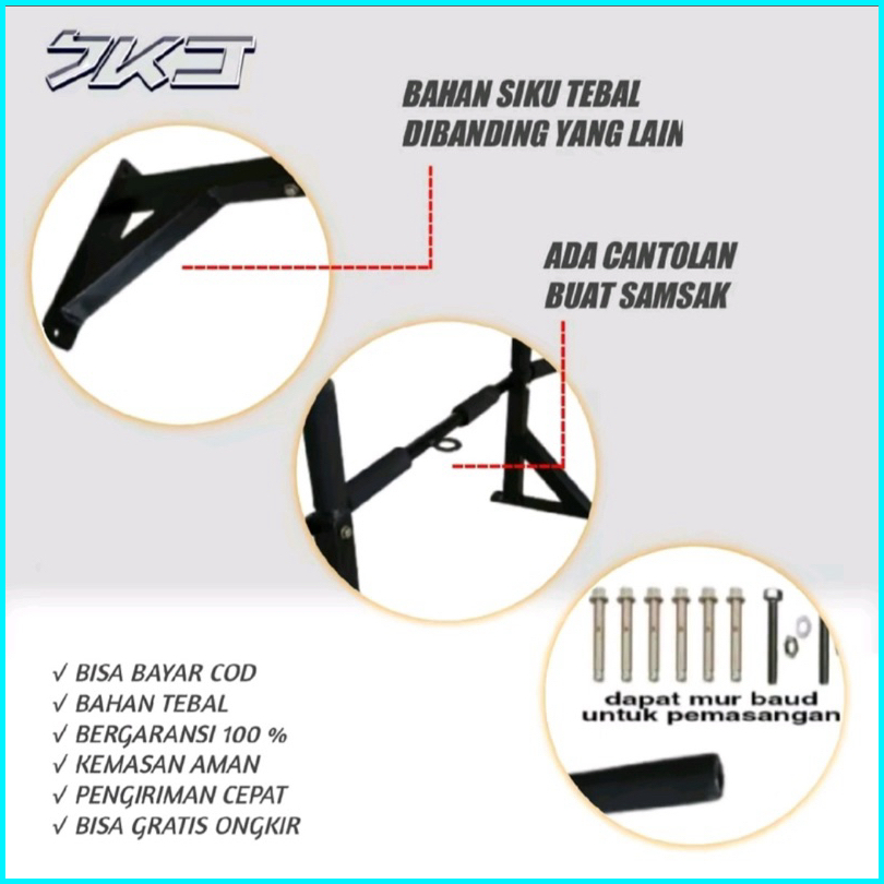 Pull Chin Up Bar 6 Grip Fitness Pasang Dinding Bisa Gantungan Samsak Tinju