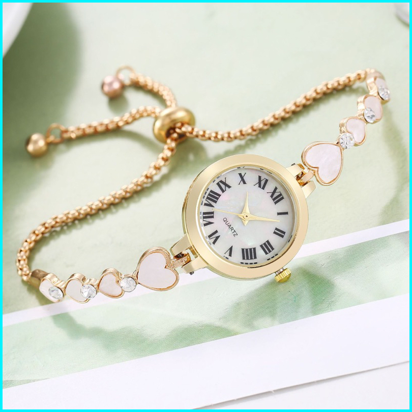 Jam Tangan Wanita Model Rantai Serut Tali Love Jam Analog Terbaru Ca077