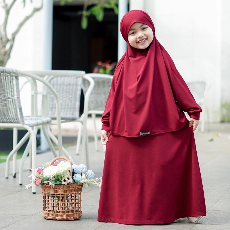 stelan gamis anak perempuan French Khimar/ French Khimar Aisyah set by Luthfia kids