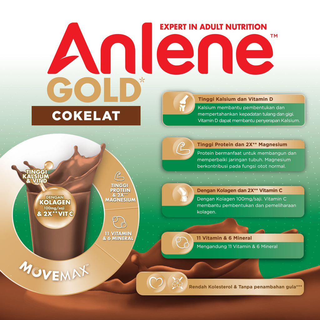 Anlene Gold 5X Susu Bubuk Dewasa Cokelat 230g - Nutrisi Tinggi Kalsium Untuk Tulang, Sendi, dan Otot