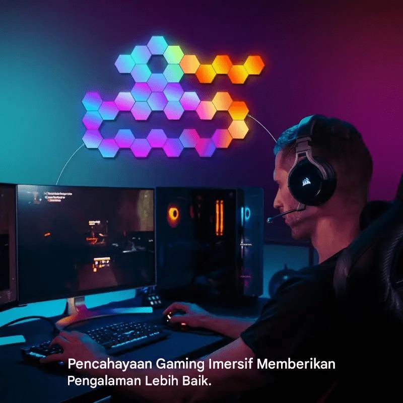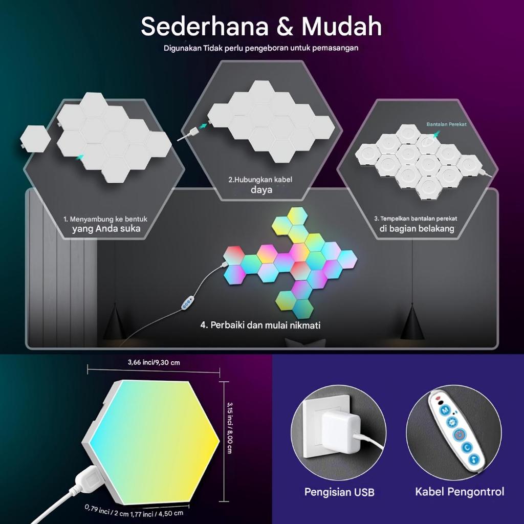 [Garansi 1 tahun] Remote Control Lampu Heksagonal RGB + Lampu Hias Dinding yang Dikendalikan Aplikasi Seluler 10 pcs