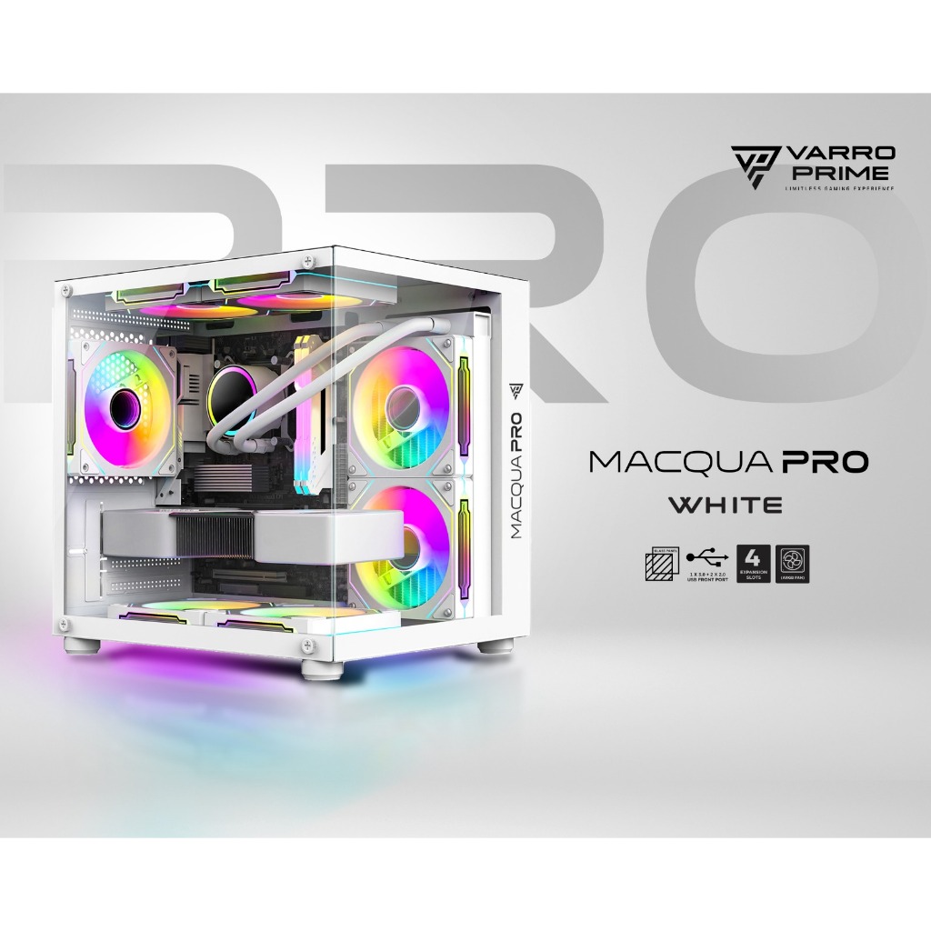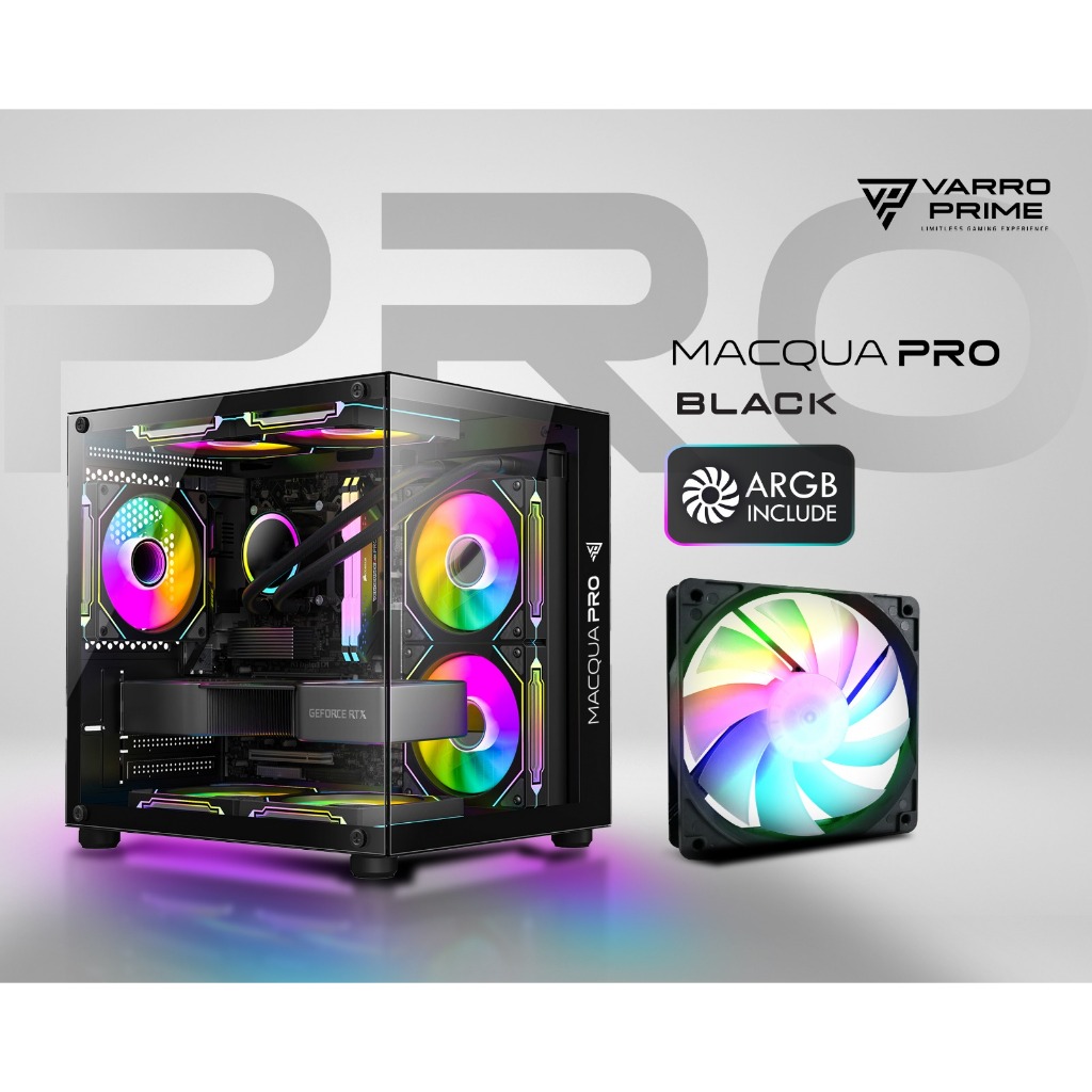 Casing Pc Gaming Varro Prime Macqua Pro M-Atx Free 3 Fan Rgb Tempered Glass