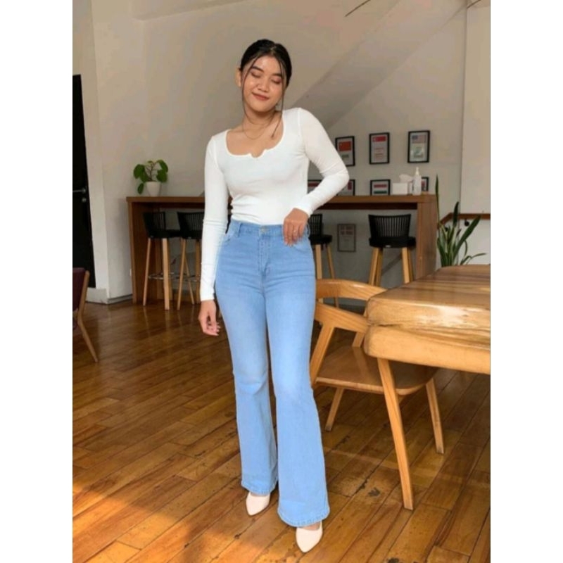 highwaist cutbray jeans wanita