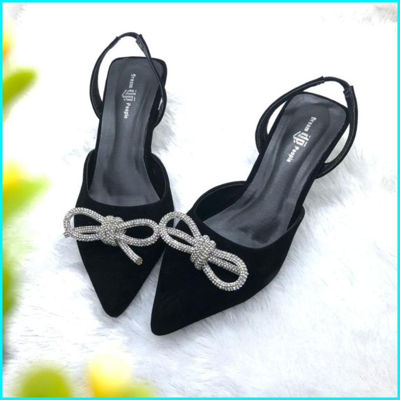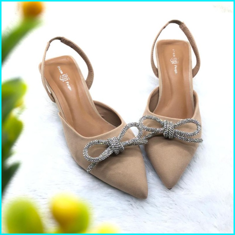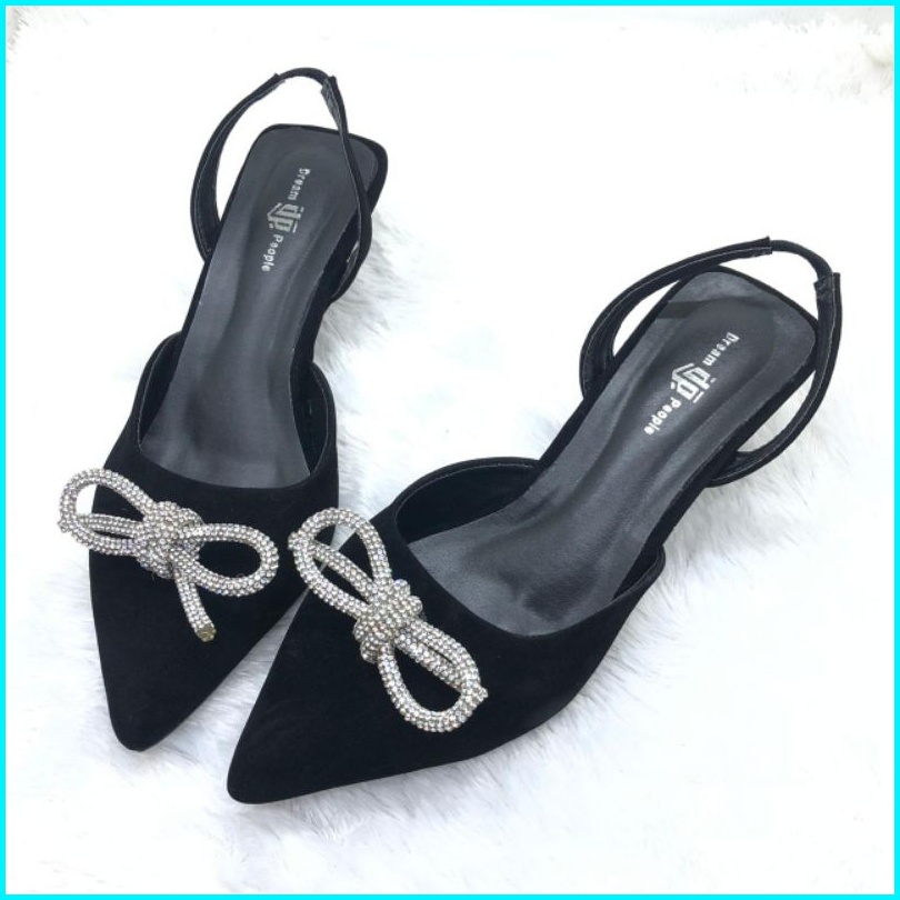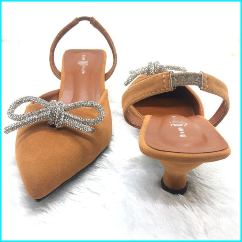 Novia Dream People Shoes Sepatu Sandal Selop Wanita Wedding Shoes Sandal Pesta Tali Belakang Hak 5cm