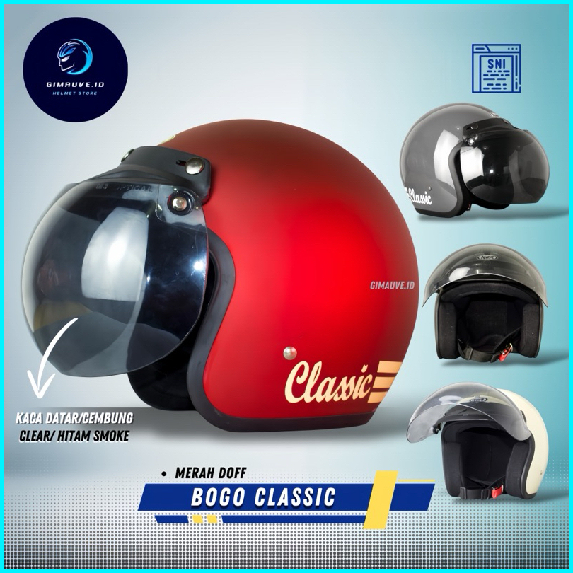Helm Bogo Classic Premium Helm Halface Free Kaca Cembung Atau Datar Helm Sni