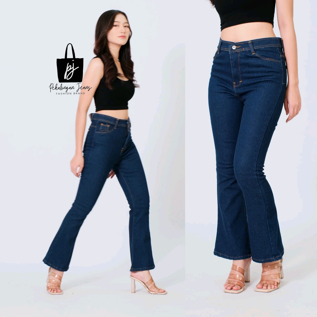HW Highwaist Celana Panjang Jeans Cutbray Wanita Stretch Jeans Denim Korean Style Flared Viral Kekinian