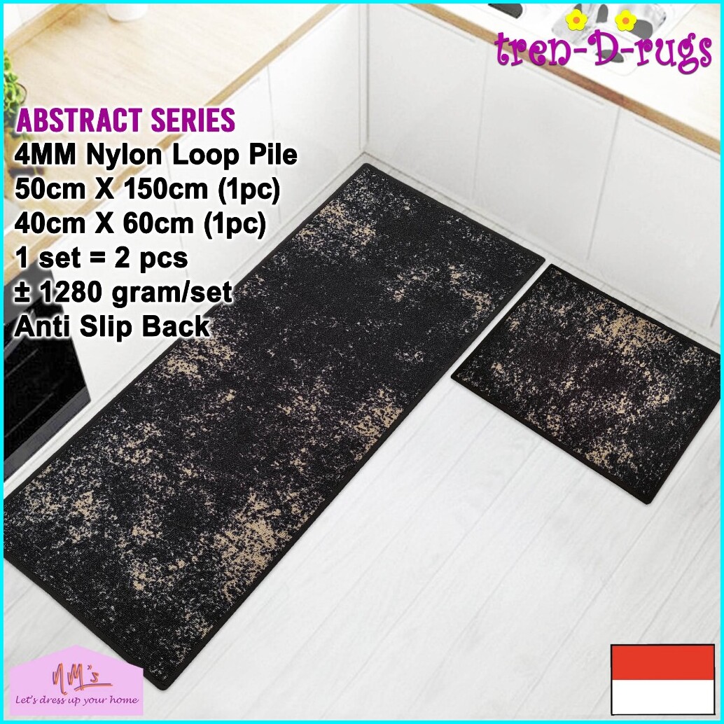 Tren-d-rugs Keset Kaki Motif Abstrak Modern Alas Dapur Panjang Lantai Anti Slip 1 Set Isi 2pcs - Nms