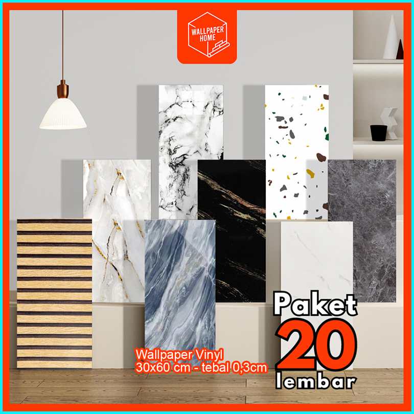 Wallpaper Home Paket 20 Lembar Vinyl Marble Granit Wallpaper Dinding Kamar Stiker Keramik 30x60cm