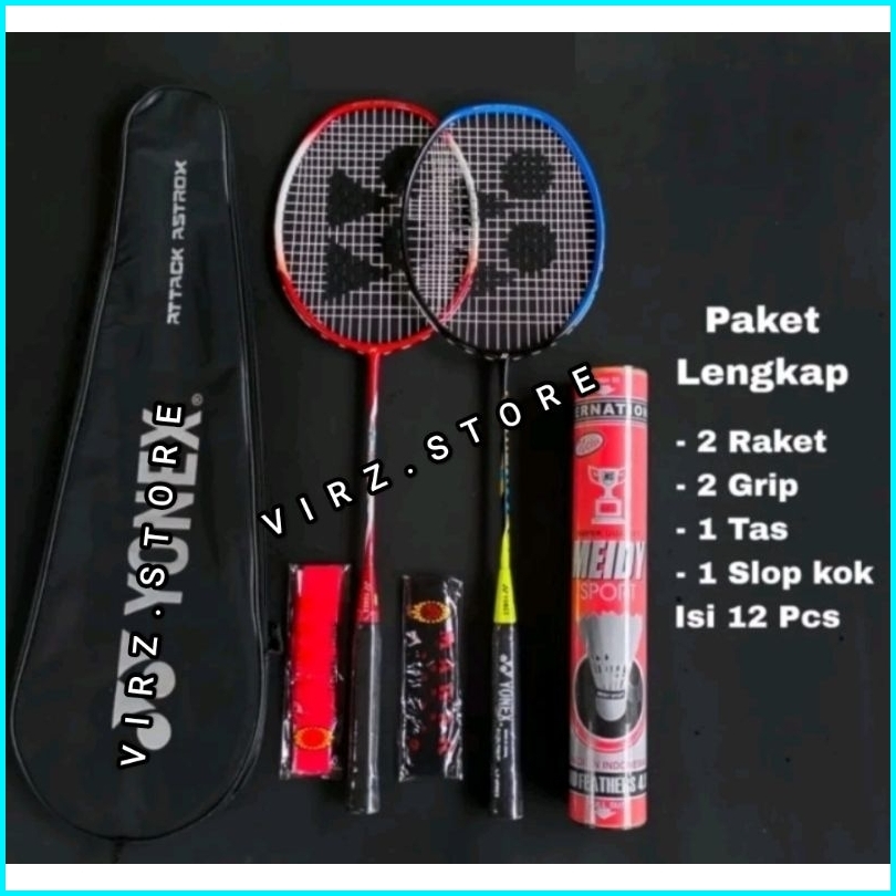 Raket Badminton Paket Lengkap Model Senyawa Tanpa Sambungan Terlaris 2 Raket 2 Grip Kok Tas