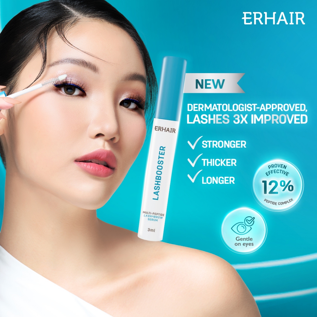 ERHAIR Lashbooster Multi-Peptide Lash & Brow Serum (3ml) - Serum Alis & Bulu Mata Rekomendasi Dermatologis 12 PERSEN Peptide Complex | Hypoallergenic formula | Mengurangi rontok