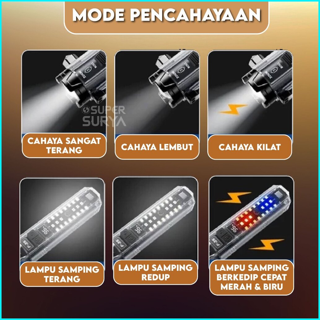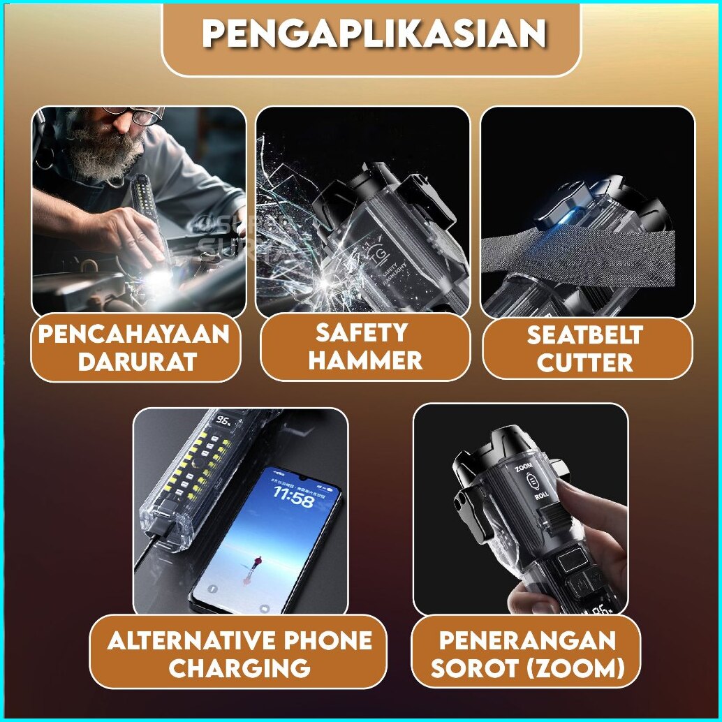 Senter Led Emergency 30w Laser 10 In 1 Safety Hammer Alarm Roller Zoom Super Terang Usb Cas