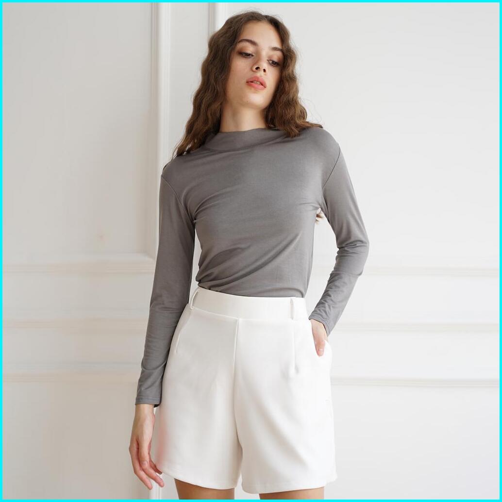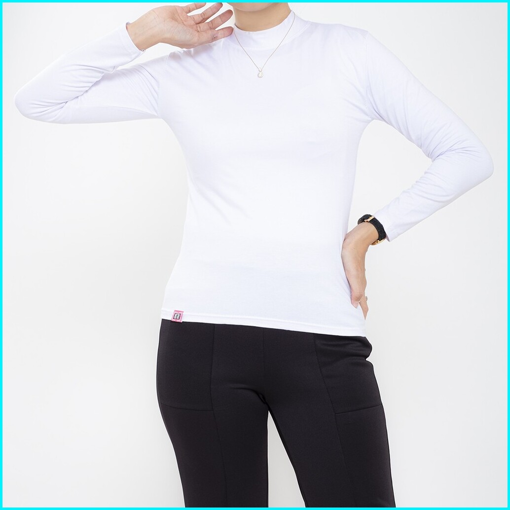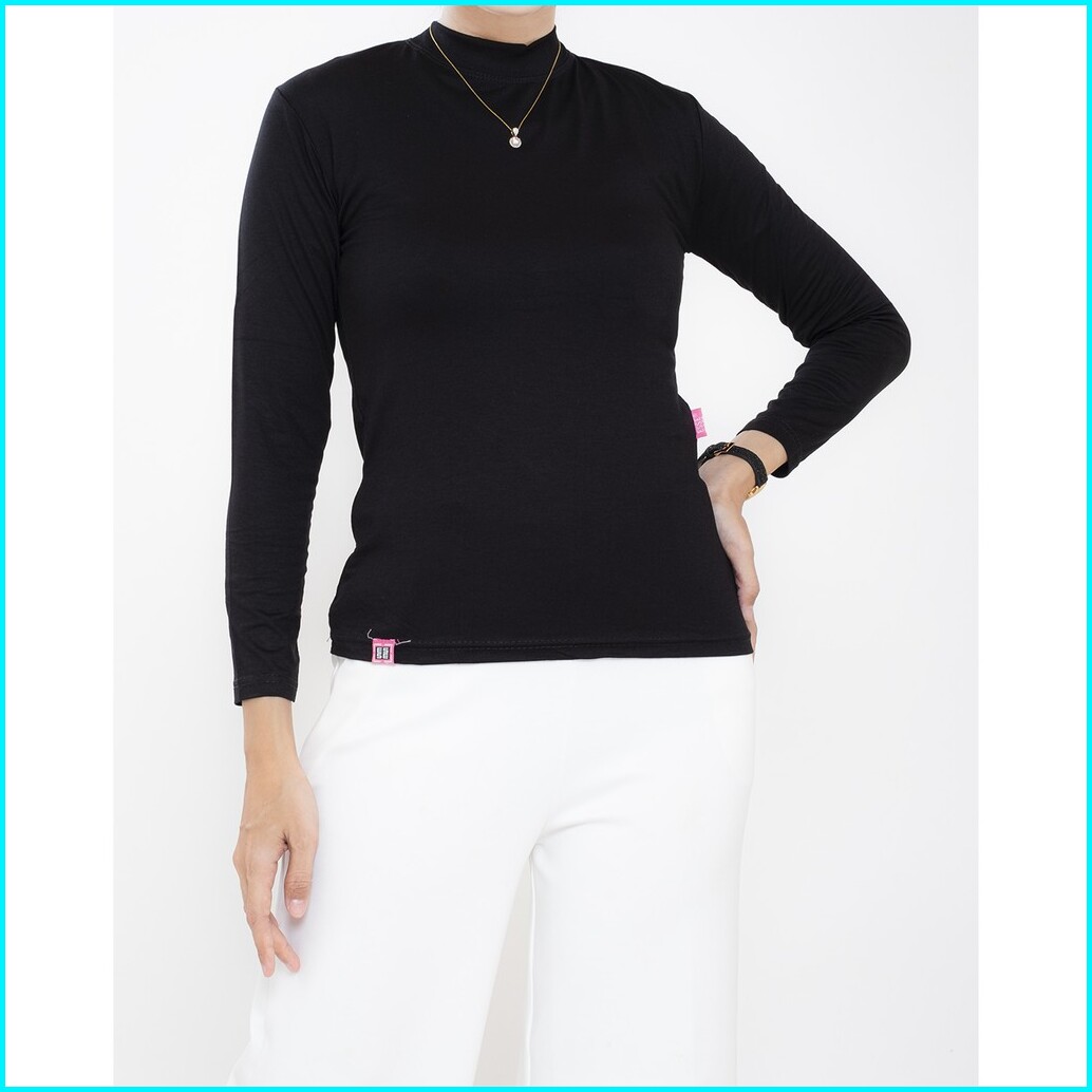 Haymeeidn - Baju Manset Wanita Lengan Panjang Inner Dalaman Cewek Bahan Kaos Hitam Dan Putih