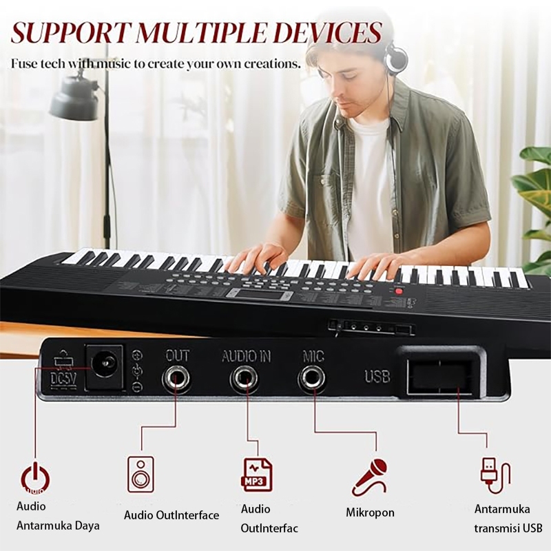 STRUMORA Keyboard piano 61 tuts dengan Mikrofon Speaker Bawaan, Dudukan Lembaran Musik dan Catu Daya, Piano Keyboard Elektronik Portabel untuk Pemula