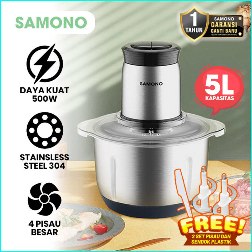 Samono Food Chopper 2 In 1 Stainless Steel 304 Kapasitas 5 Liter Garansi Resmi 1 Tahun Sw-c500