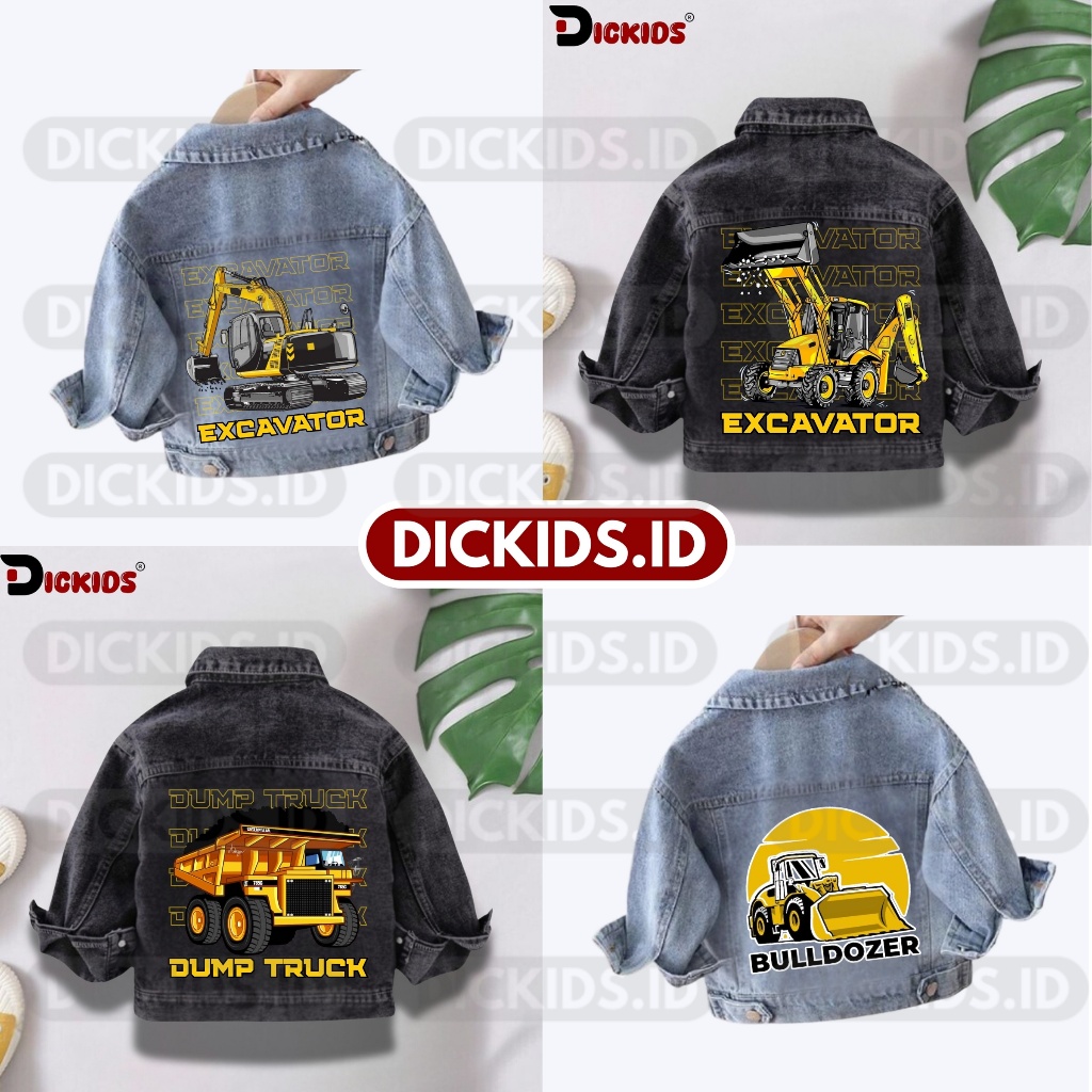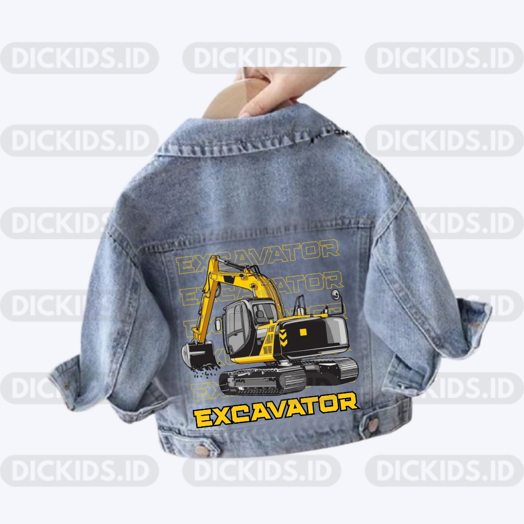 Jaket Jeans Anak Karakter Excavator Truck Usia 1 - 7 Tahun Snow Blue & Black
