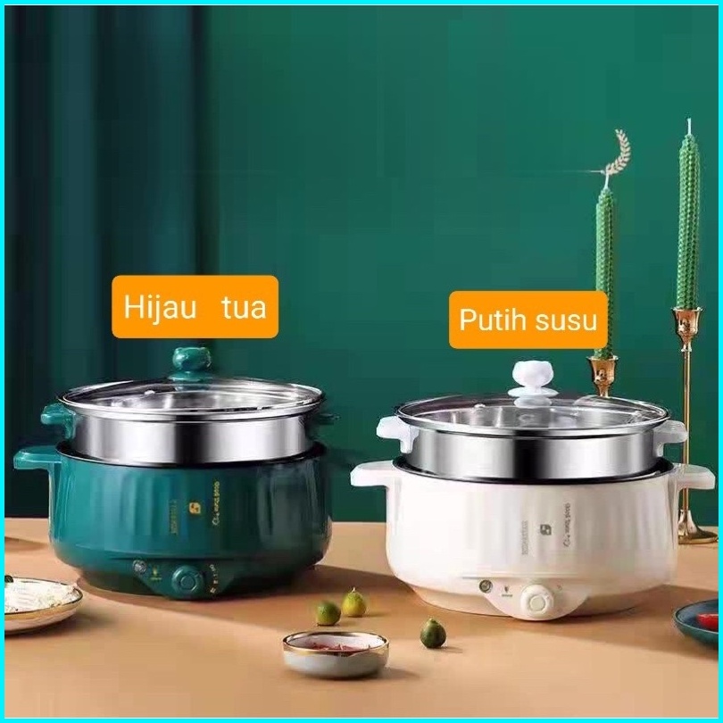 Panci Listrik 2.2l Serbaguna Alat Masak Multifungsi 22cm Anti Lengket Free Kukusan