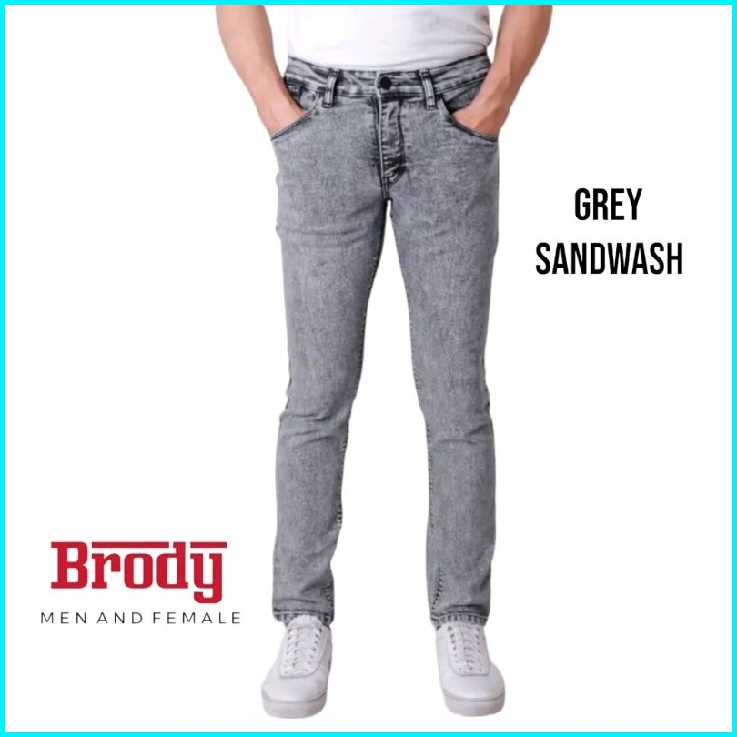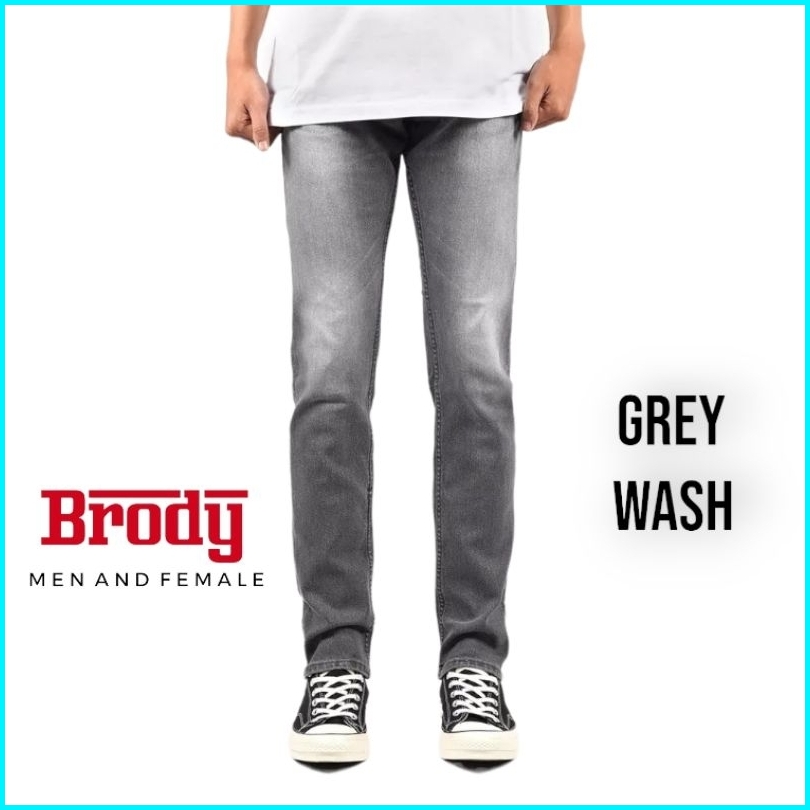 Celana Jeans Pria Bahan Melar Denim Slim Fit Cowok Abu Muda Washing Grey Stone Cerah