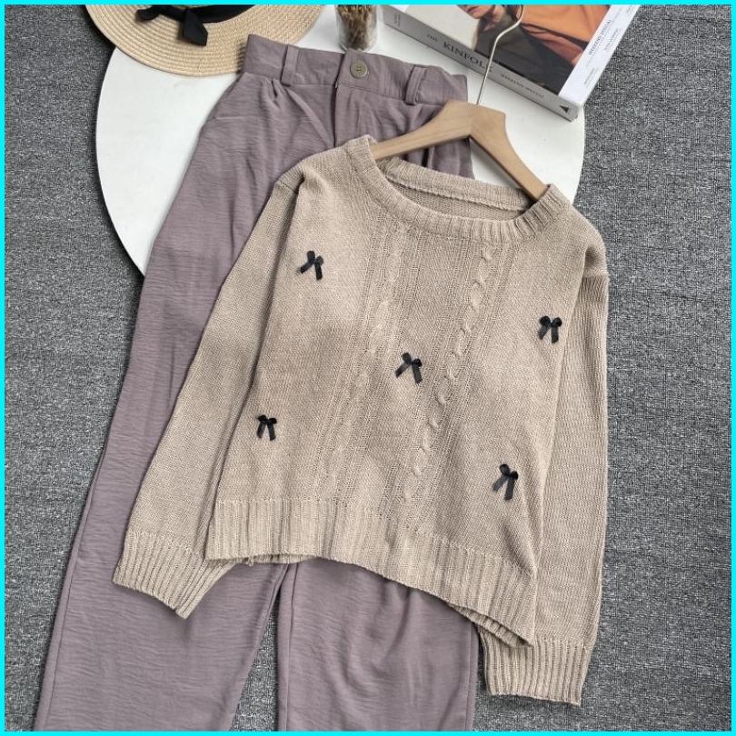 Violine Store - Oneset Setelan Wanita Remaja Kekinian 2025 Setelan Celana Panjang Atasan Rajut Kulot Crinkle Airflow Kor