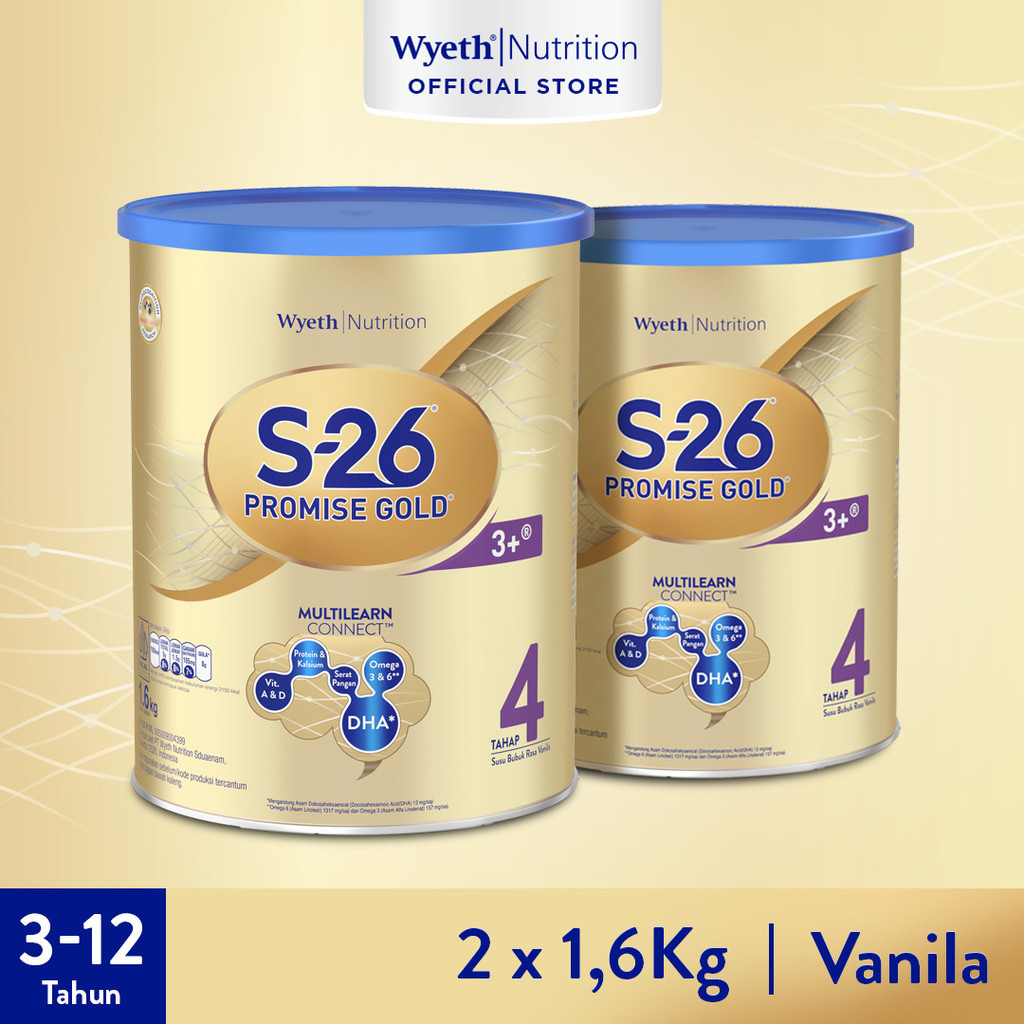 S-26 Promise KUNING MENGKILAP Tahap 4 Vanila Susu Pertumbuhan Anak Usia 3-12 Tahun, Kaleng 1600 gr x2