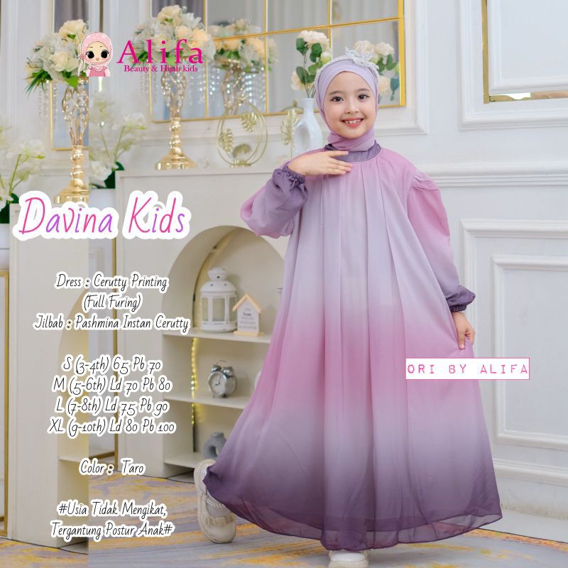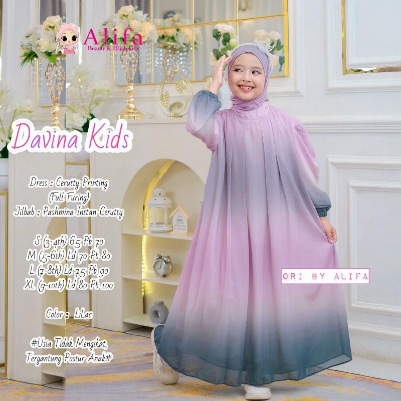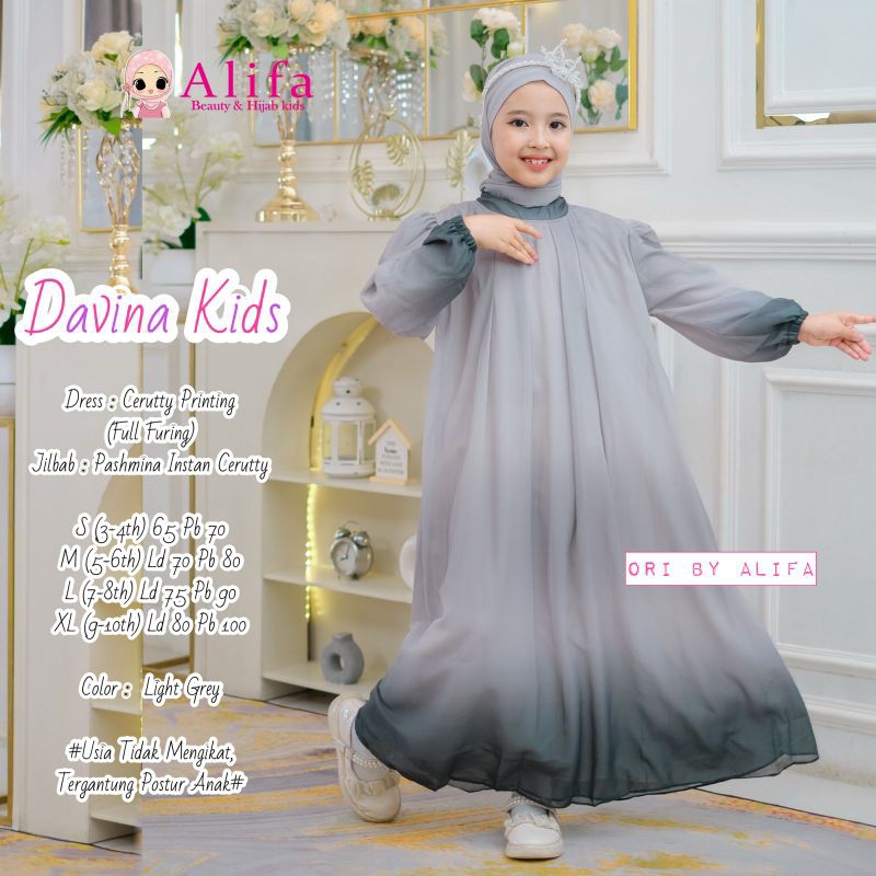 Davina Kids Gamis Anak Set Hijab Ceruty Alifa