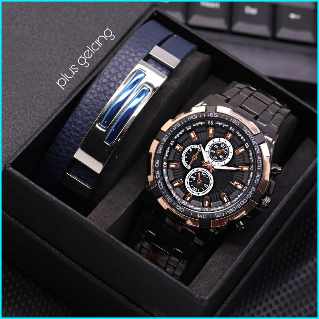 Jam Tangan Pria Cowok Swis Sporty Fashion 7565ls Chrono Variasi Free Gelang Box -