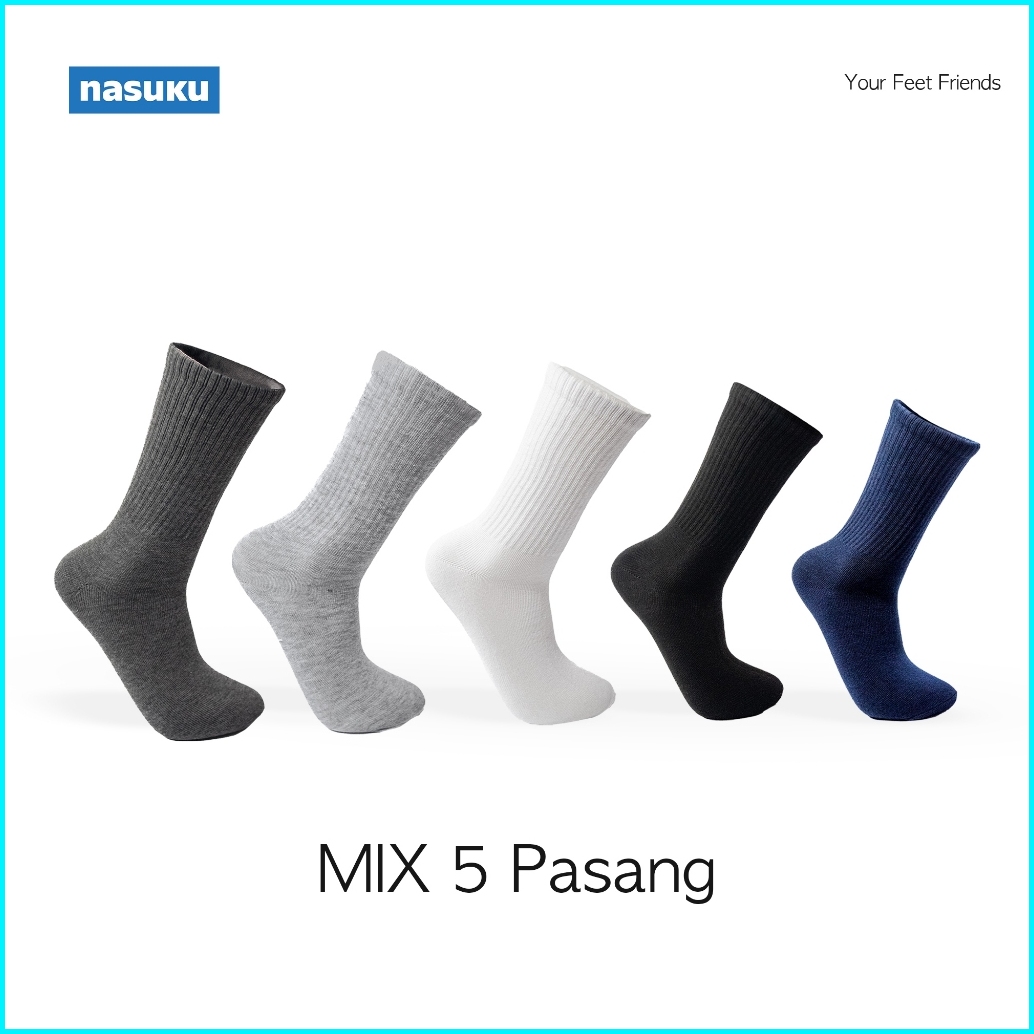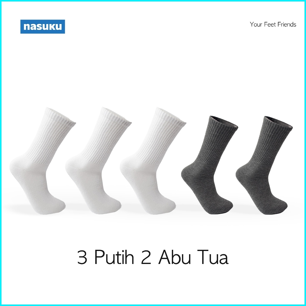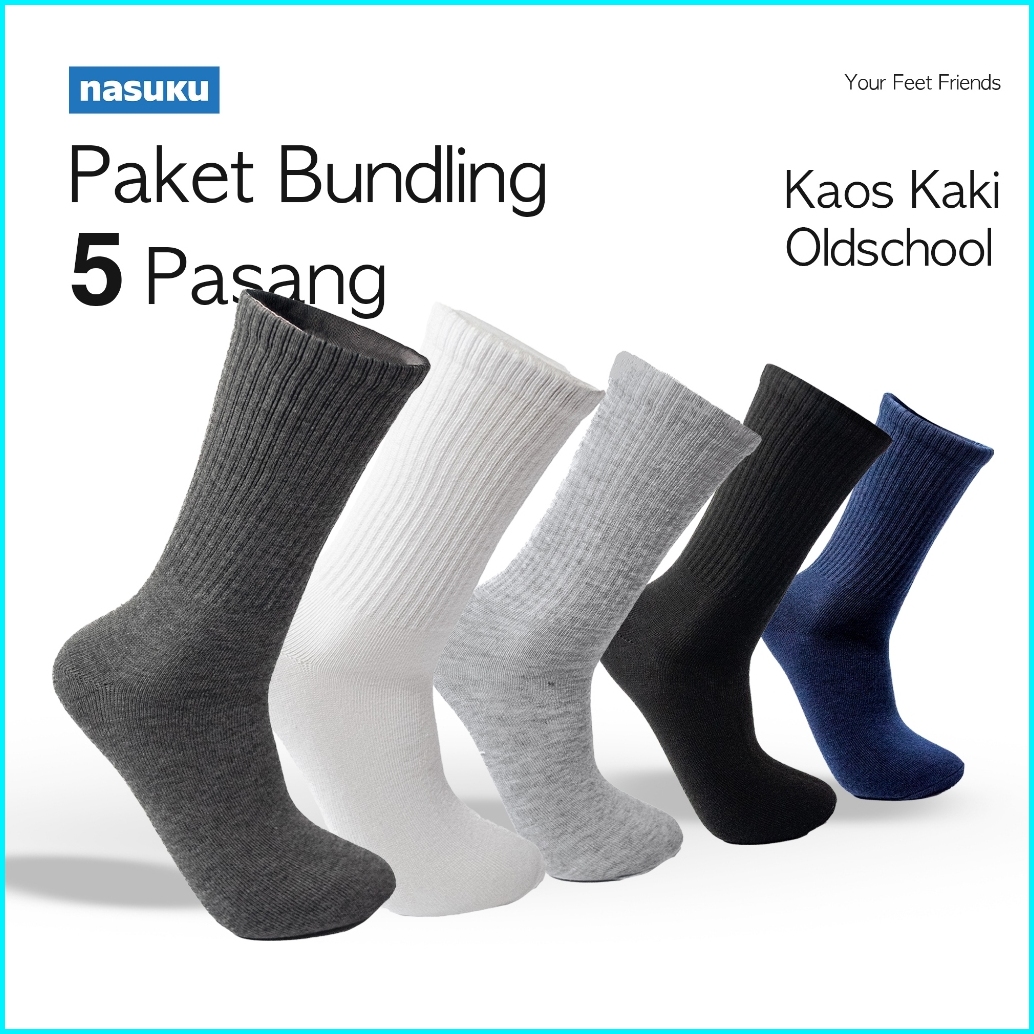 Nasuku - Paket 5 Pasang Kaos Kaki Oldshool - Paket Bundling Kaos Kaki Polos - 5 Pasang Kaos Kaki