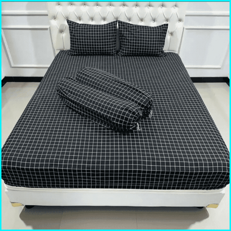 Sprei Aesthetic Kotak Hitam 2 Bantal 2 Guling Ukuran 90x200 120x200 140x200 160x200 180x200 200x200