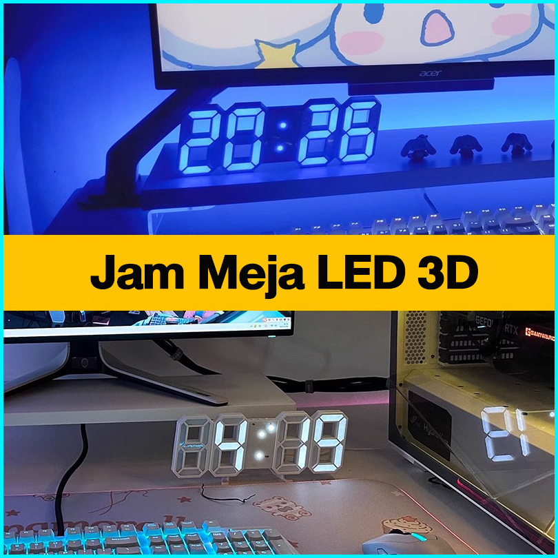 Jam Meja Led 3d Jam Dinding Digital Led 3d Bentuk Angka Modern Minimalis Tampilan Waktu Suhu Tanggal