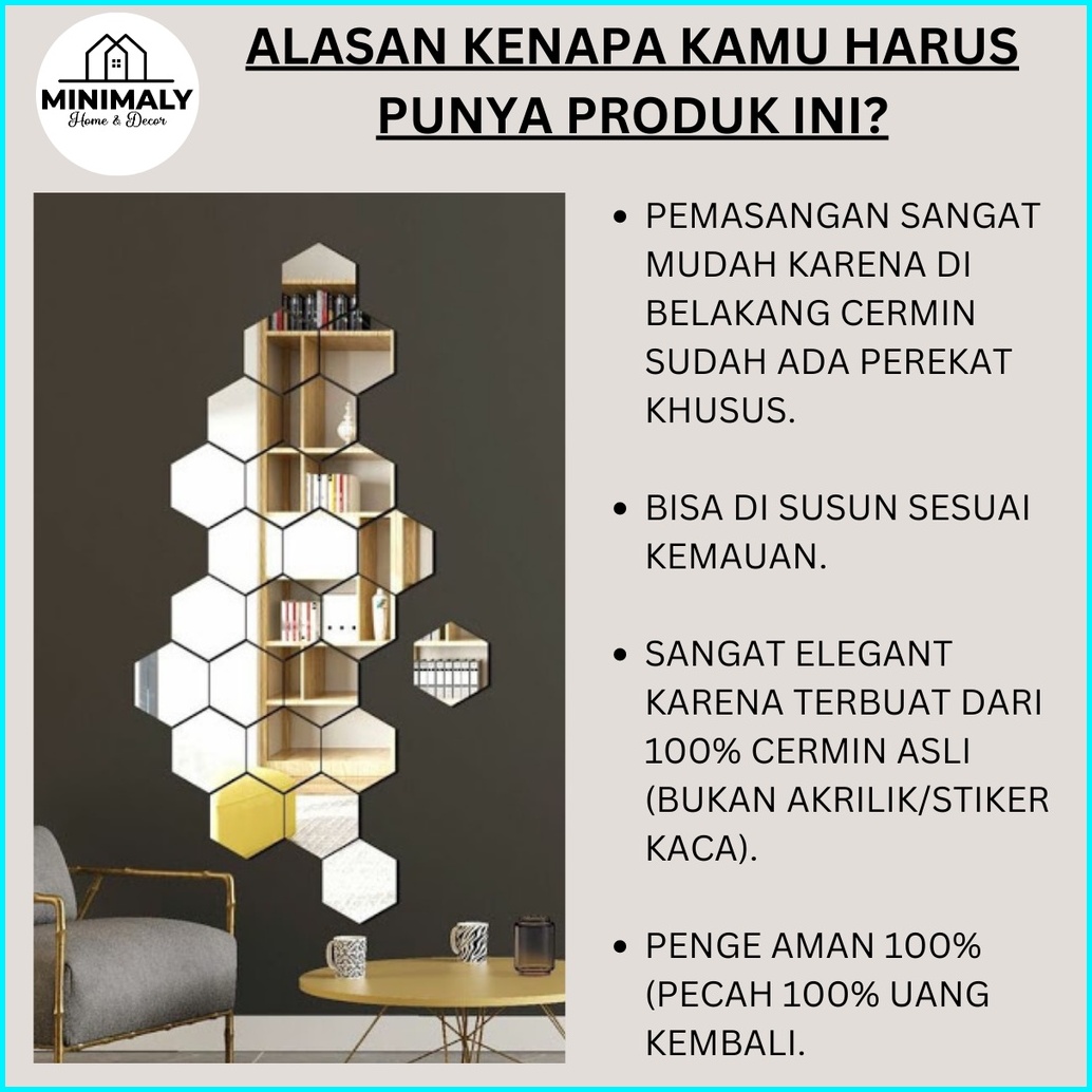 Minimaly11 Kaca Cermin Aesthetic Paket Isi 7 Pcs Kaca Aesthetic Kamar Hiasan Dinding Aesthetic Cermin Tempel Dinding Cer
