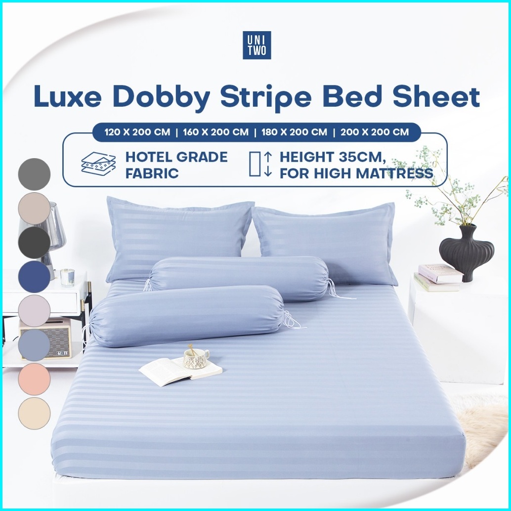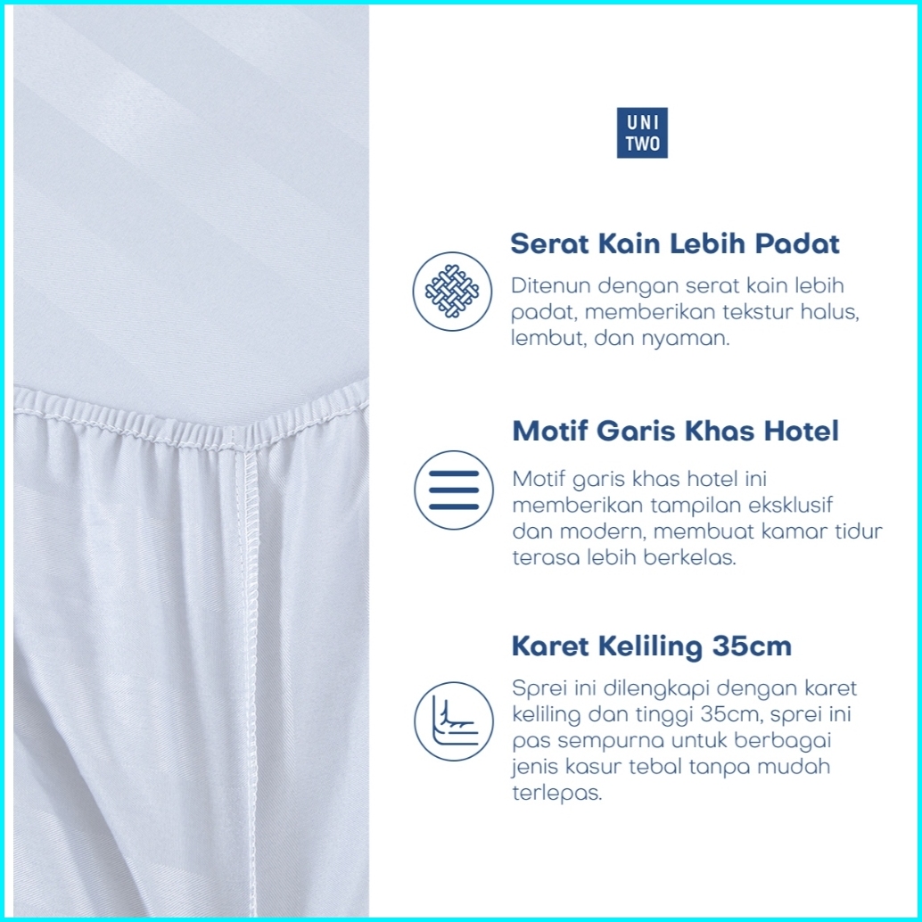 Unitwo Premium Sprei Set Only Luxe Sprei Set Hotel Motif Salur Dengan Sarung Bantal Dan Guling Karet Keliling