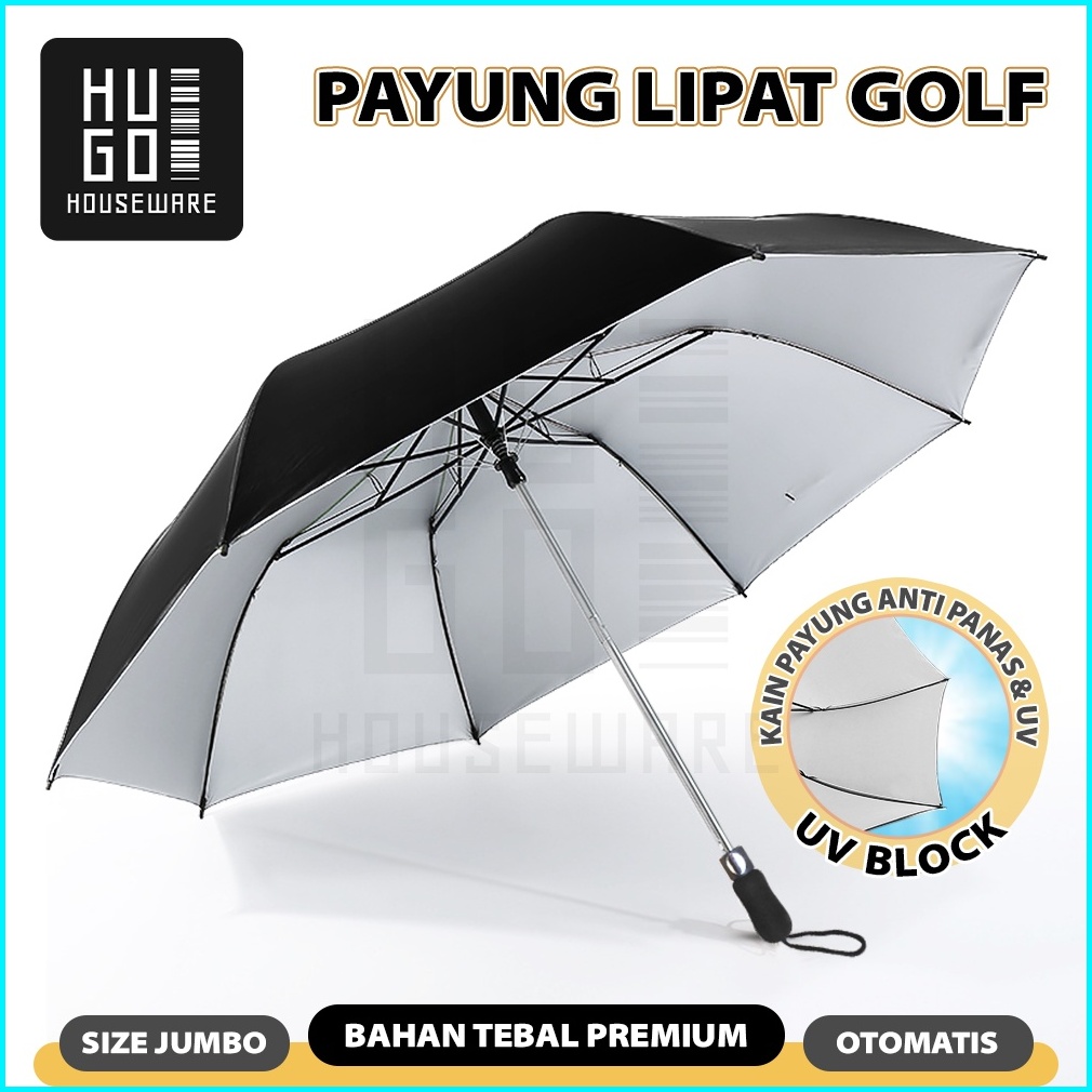 Payung Lipat Golf Besar Mewah Jumbo Otomatis Polos Lipat Dua Hugo