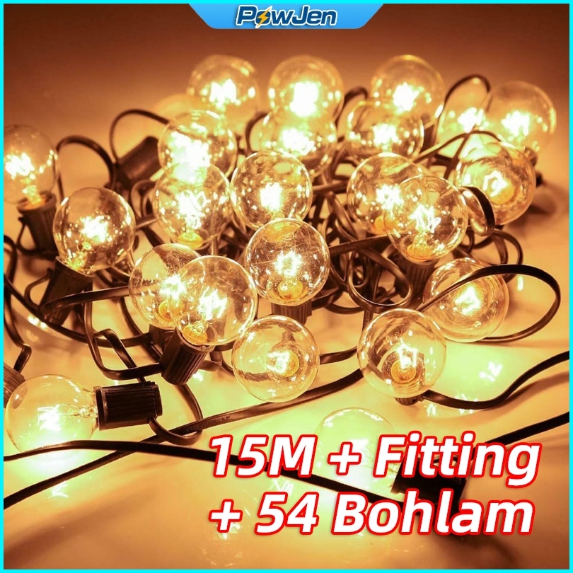 Powjen 25 Lampu 7m Tungsten Lampu Outdoor Ada Fitting Kabel Tahan Air Kafe Dekorasi Lampu Hias E12 Soket Komplit Lampu