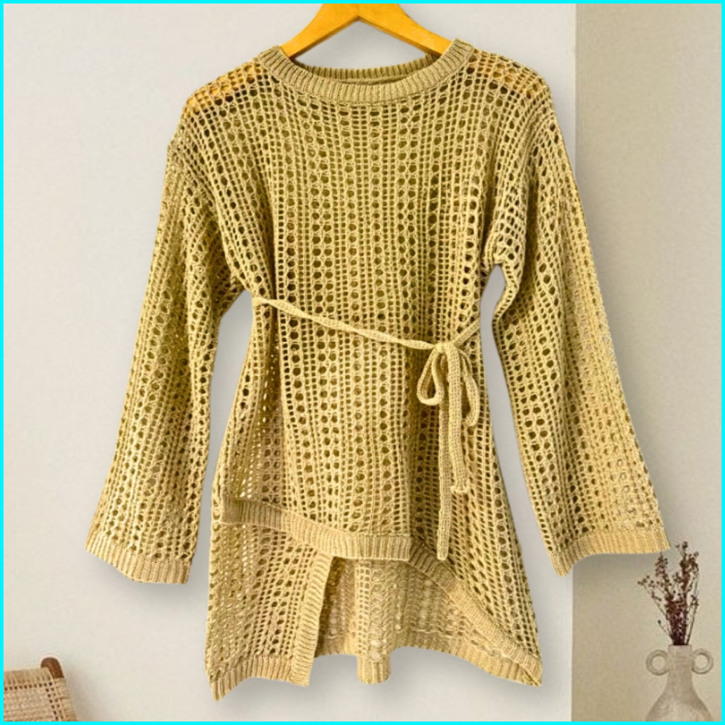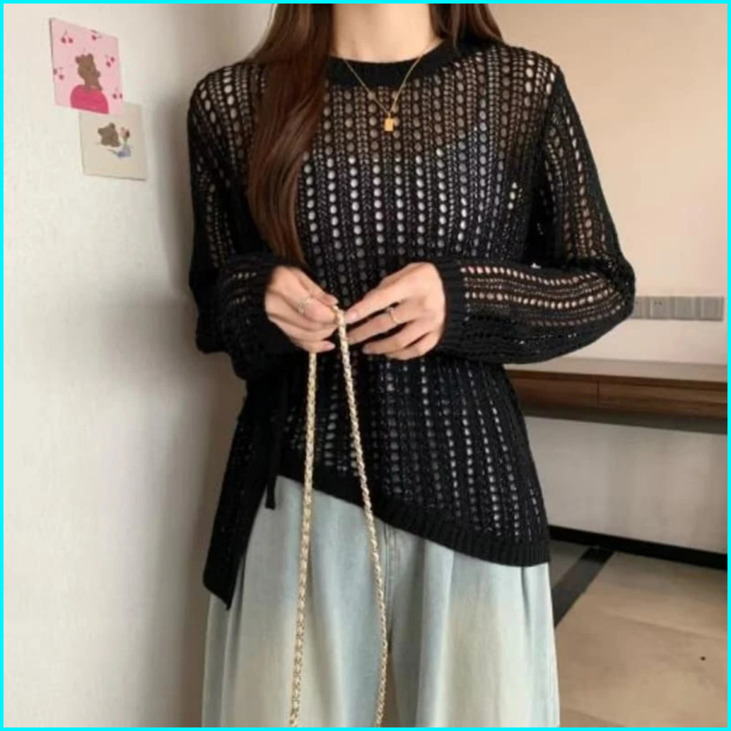 Zie Atasan Sweater Rajut Wanita Jaring Tali - Outer Knit Tali Korean Style By Raqi Knitwear