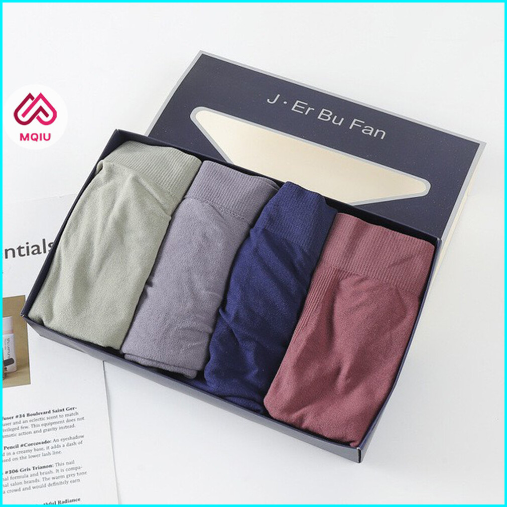 Mqiu - 1 Box Isi 4pcs Boxer Pria Polos Celana Dalam Yang Nyaman Bernapas Impor High Quality Cd Pria Je4110