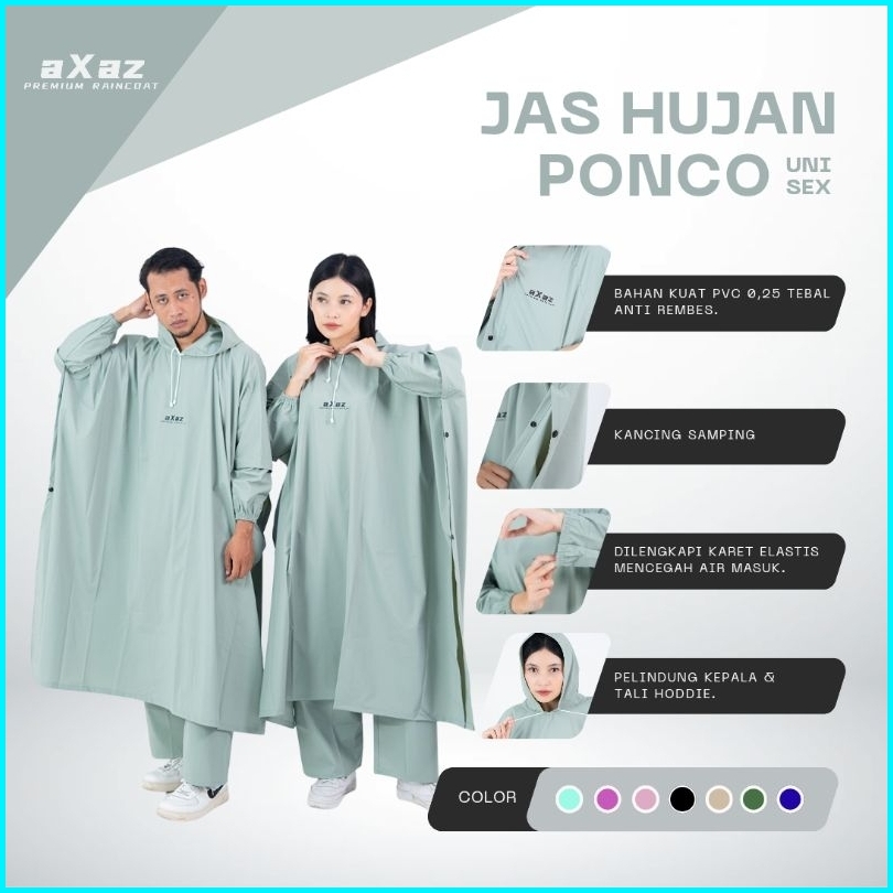 Axaz Jas Hujan Ponco Dan Stelan Ponco Celana Mantel Hujan Kelelawar Bahan Pvc Tebal Elastis Raincoat Termurah