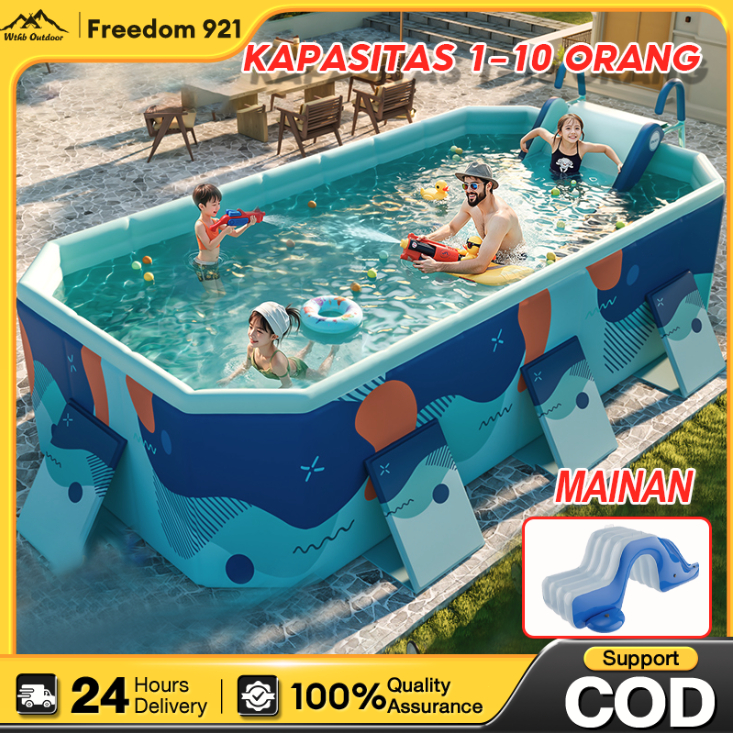 Kolam Lipat Jumbo Kolam Renang Anak Keluarga Jumbo Berkualitas Kolam Lipat Kotak Tanpa Pompa Untuk 1-10 Orang Swimming Pool Tahan Lama