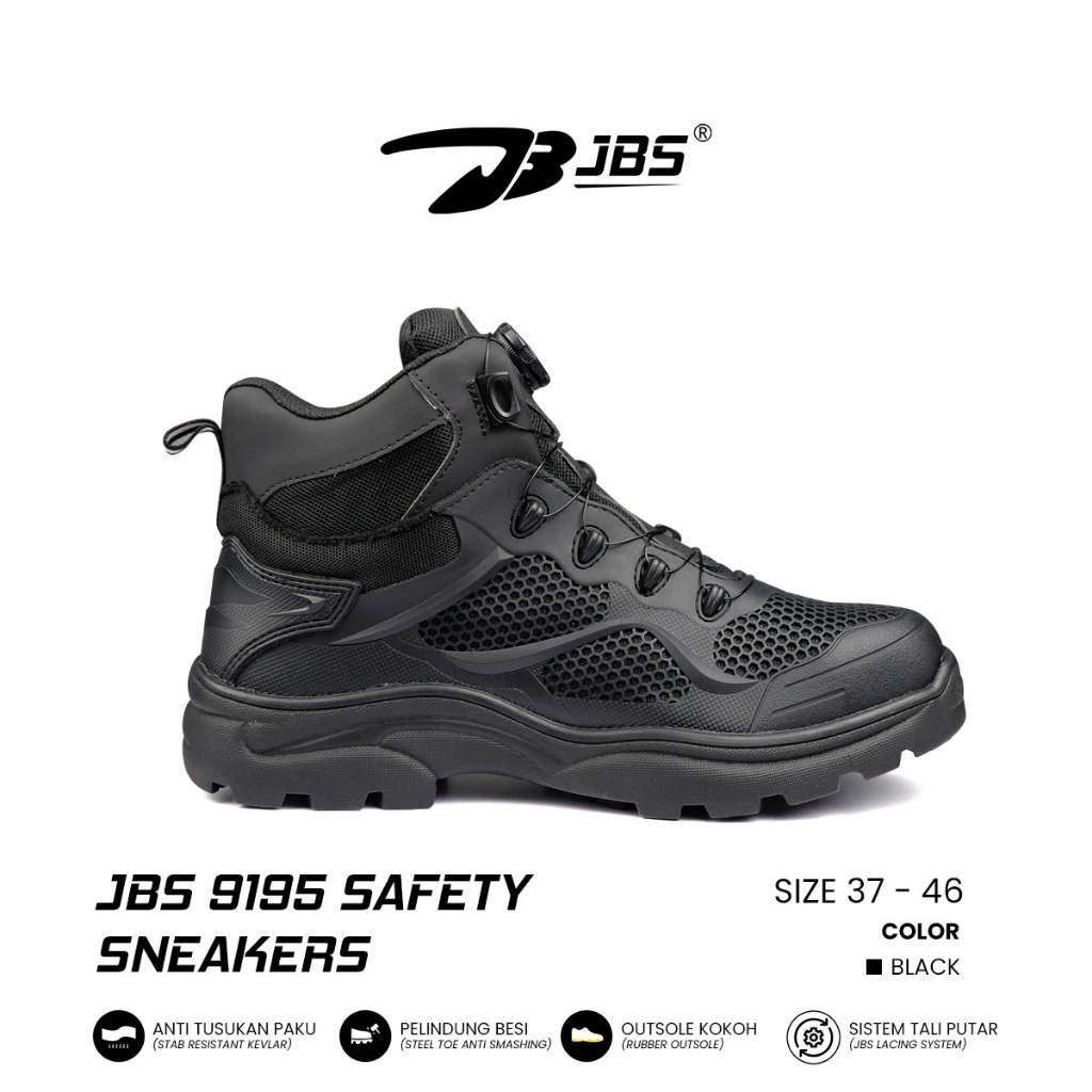 Sepatu Jbs 9195 Sepatu Safety Sneakers Tali Putar Pelindung Baja Anti Tusuk Paku Kevlar