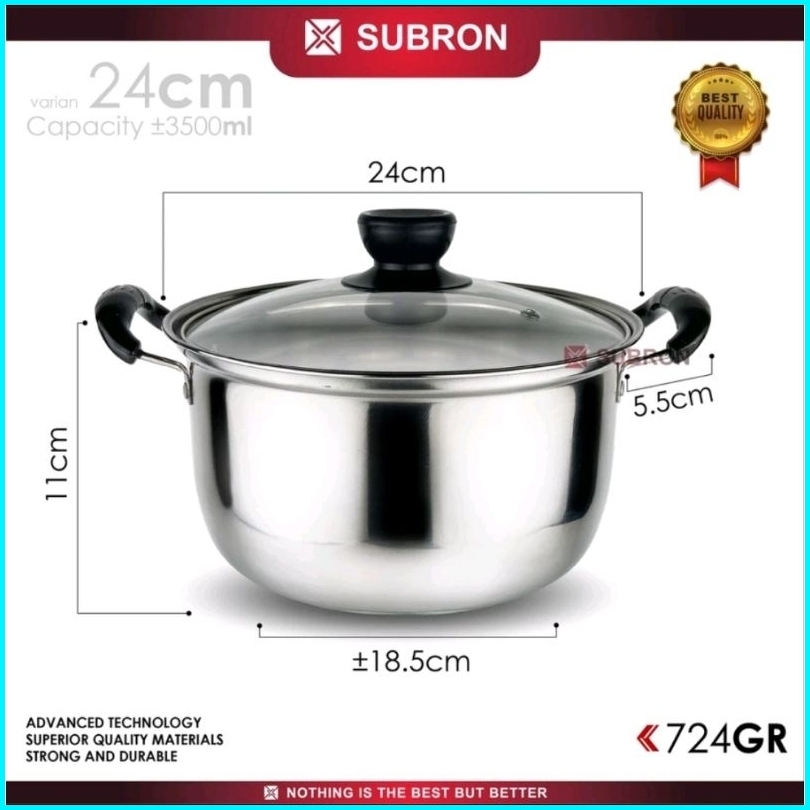 Panci Kuah Sup Tutup Kaca Subron Stainless Steel Premium Quality Sauce Pot W Glass Lid 18cm 20cm 22cm 24cm 26cm
