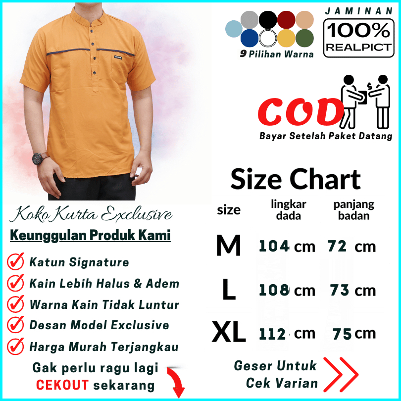 Baju Koko Pria Kurta Taqwa Pakaian Muslim Pria Dewasa